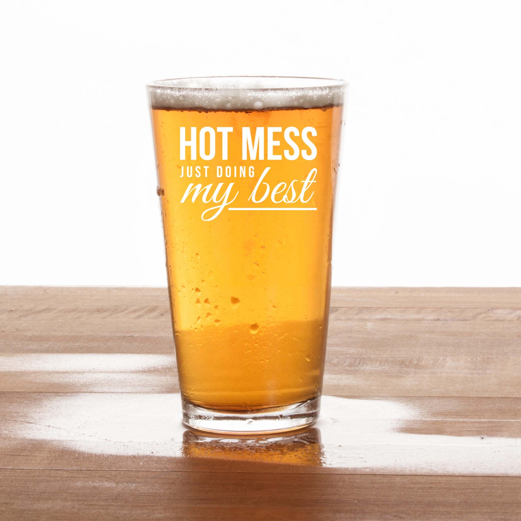 Engraved Hot Mess Just Doing My Best Single Beer Glass